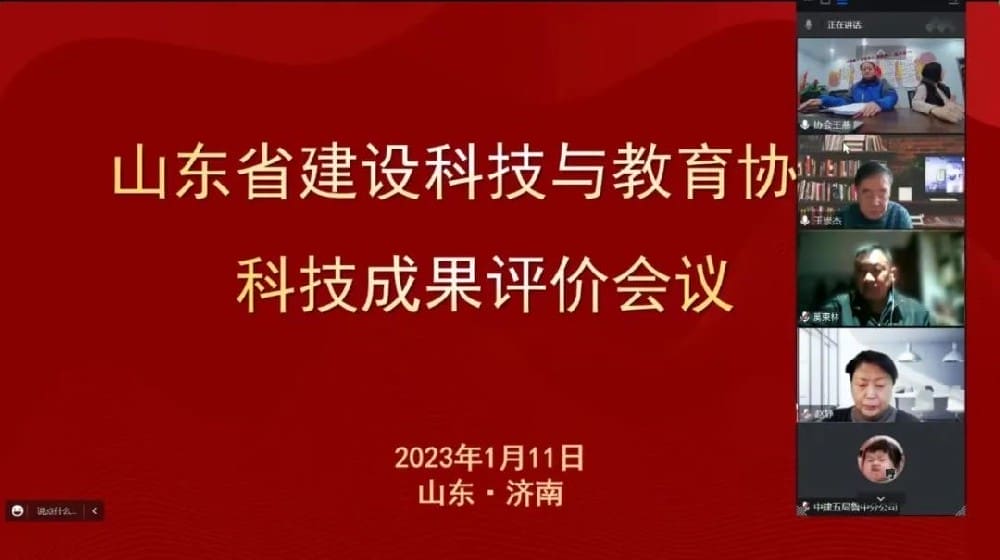 1月11日,山东省建设科技与教育协会组织召开2023年度第一轮科技成果评价线上会议。 本轮评价组由泰山学者王崇杰任组长,赵静、嵇飙、万东林、李海峰组成...