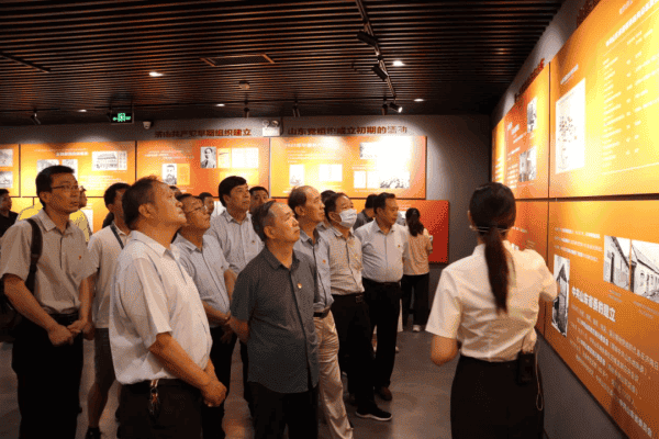 1931年4月5日,在济南市纬八路国民党刑场(省委党校西校区院内),邓恩铭、刘谦初等22 位山东早期党组织的领导人被国民党反动派杀害,史称“四五”烈士。在“四五”主题展览《穿越时空的党课》,瞻仰了先烈的遗物遗迹遗存。展览采用文字介绍、影像呈现、实物展陈等表现形式,展示了“四五”烈士的生平经历以及为革命事业英勇就义的光辉事迹。大家自觉地在每一块展板、每一件遗物前驻立,在讲解人员的解说下细心聆听、仔细瞻仰。大家耳畔仿佛回荡着那个动荡年代的血雨腥风,眼前仿佛伫立着那一个个高大不屈的身姿,历史与现实交相辉映,心灵与精神产生共鸣。