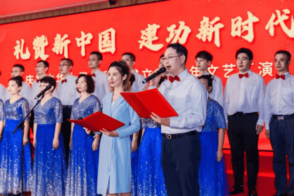 歌曲合唱《我和我的祖国》《住建之歌》《今天是你的生日》《不忘初心》等,唱响了住建人对祖国的热爱与祝福;诗朗诵《请党放心强国有我》《我的祖国》《放飞住建人的梦想》等,厚植爱国情怀,砥砺强国之志;独唱《母亲》,表达了对祖国母亲深深的敬爱和感激之情;自创诗朗诵《强国复兴铸辉煌》,展现了离退休干部积极乐观、永葆活力的良好精神风貌;激情澎湃的合唱、饱含情感的朗诵、抒情悦耳的独唱,全场气氛热烈,掌声不断。最后,厅领导、二巡、总师、专员和部分处室合唱《歌唱祖国》,全体党员干部齐声高唱,将演出推向高潮。