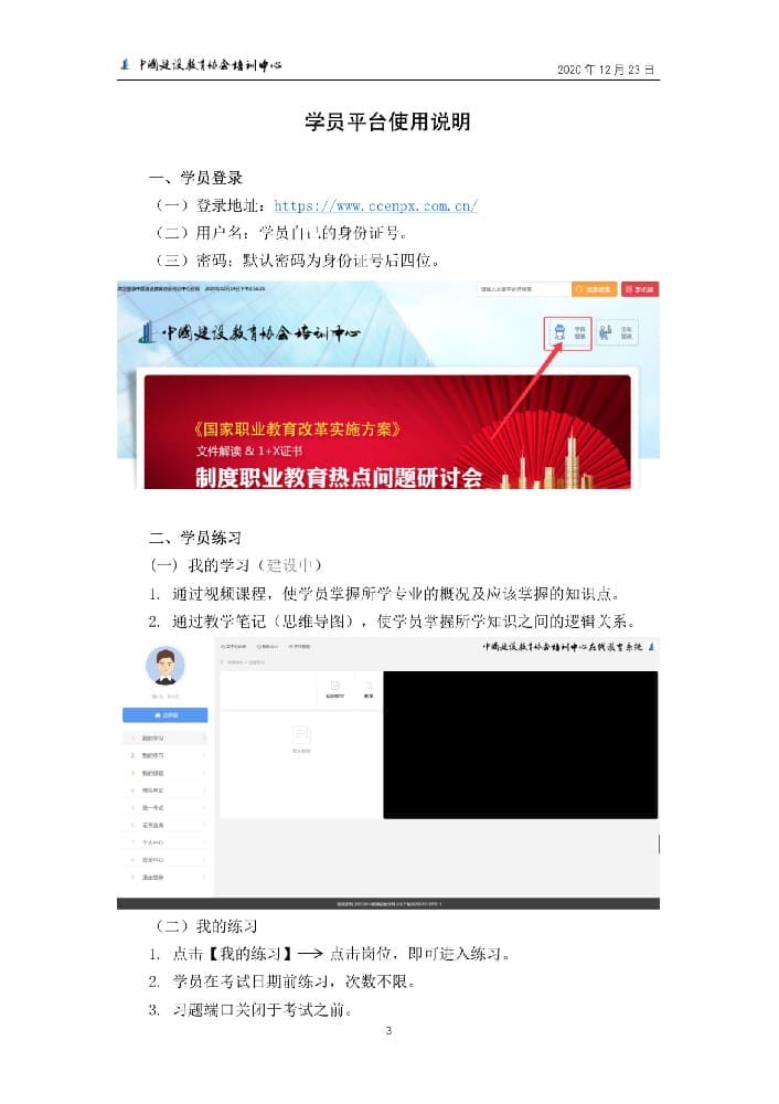 中国建设教育协会培训中心在线教育考试系统学员平台使用说明书