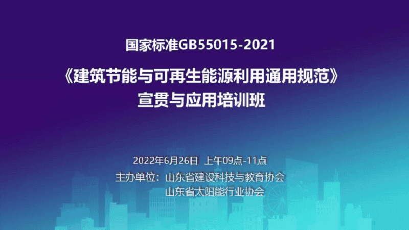 关于举办国家标准GB55015-2021《建筑节能与可再生能源利用通用规范》宣贯与应用培训班的通知各有关单位: 近日,住房城乡建设部印发的《建筑节能与...