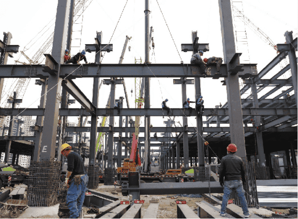 兖矿能源智慧制造项目率先开展“杜绝返工、一次成优”试点活动,规范项目质量管理行为,严格工序全过程管控,尤其针对大面积地坪、钢结构彩板、大跨度、大截面梁柱等复杂工序,从设计、工艺、材料等方面加强施工控制,确保工序一次成优,最大程度节能降耗。在厂房大面积地坪施工中,采用大型激光整平机施工,实现24m跨度一次成型,地坪平整度合格率提高至95%、平均工期缩短25%。全面采用“曲臂车+汽车吊+反吊顶举升平台”联合作业,减少了现场脚手架搭设和高空平台数量,降低了安全风险,提升了施工效率。