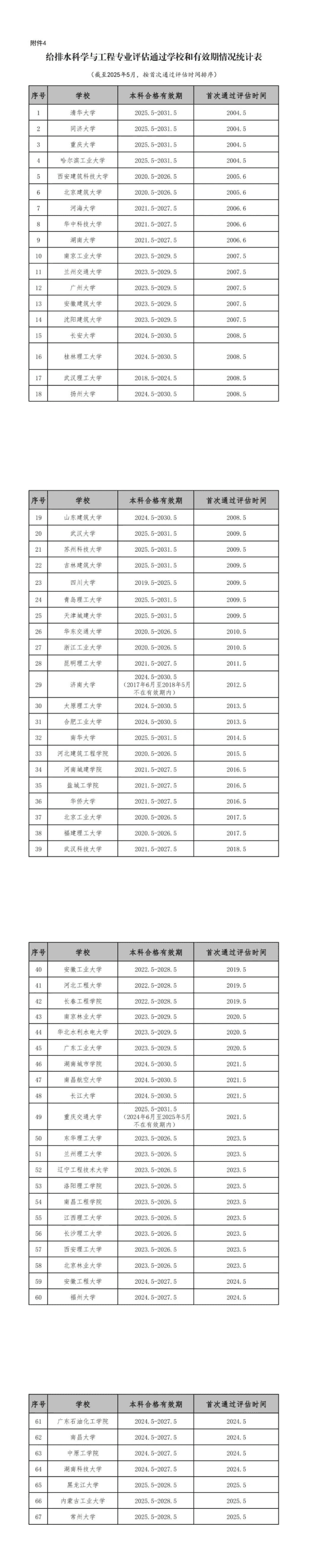 4.给排水科学与工程专业评估通过学校和有效期情况统计表(截至2025年5月).pdf