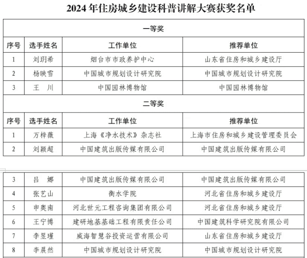 2024年住房城乡建设科普讲解大赛获奖名单