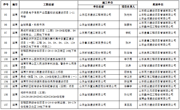 37 | 淄博 | 淄博经济开发区华福大道提升改造工程施工 | 山东恒祥市政公路工程有限公司 | 王超 | 淄博政达建设项目管理有限公司 |