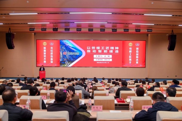 在主题交流研讨环节上,行业智能建造领域专家、劳模创新工作室领衔人和工会主席代表,围绕“智能建造 匠心筑梦”主题分享经验做法,一公司作“加快智能建造技术应用,推动建筑业高质量发展”经验交流。
