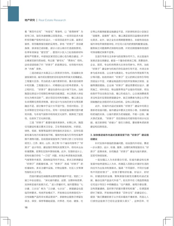 调研发现,在城市发展长期重规模轻品质、重开发轻运营等导向下,推动内涵式发展存在多重困境,与之类似,在“好房子”建设中,地方普遍对其概念存在误读,从而出现执行偏差,设计、标准、服务、运维等配套政策也有所缺失。