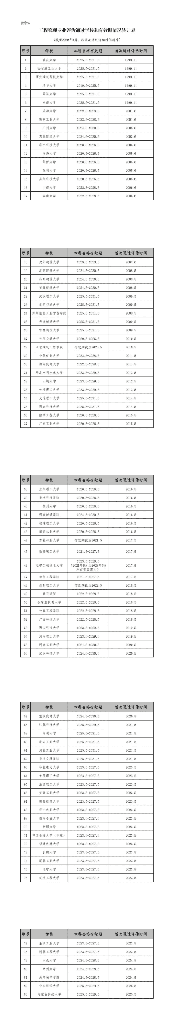 6.工程管理专业评估通过学校和有效期情况统计表(截至2025年5月).pdf