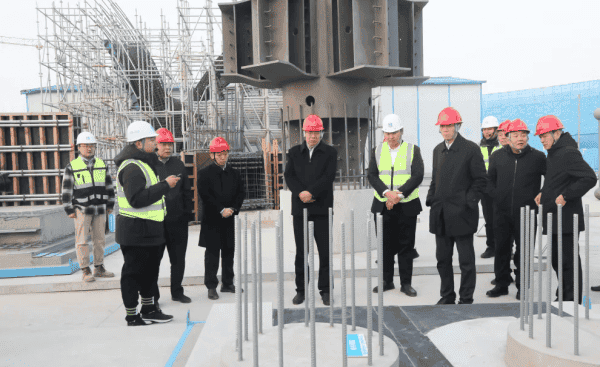 王玉志一行来到项目临时办公区科技展厅,详细了解工程项目总体情况,在T2航站楼工程施工现场调研建筑科技应用、工程质量安全等情况,随后参观了省机场管理集团综保楼文化展厅。