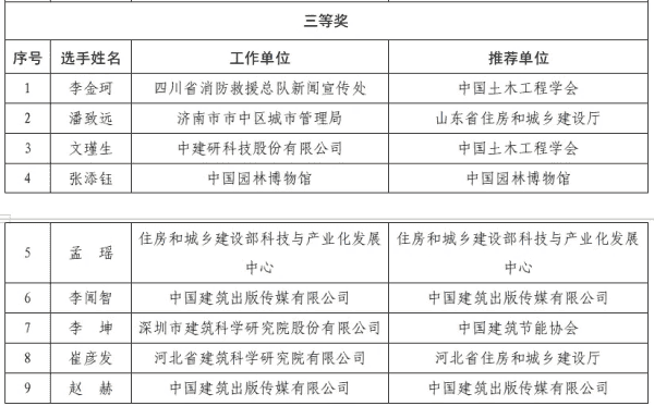 2024年住房城乡建设科普讲解大赛获奖名单