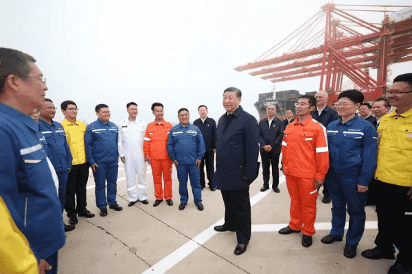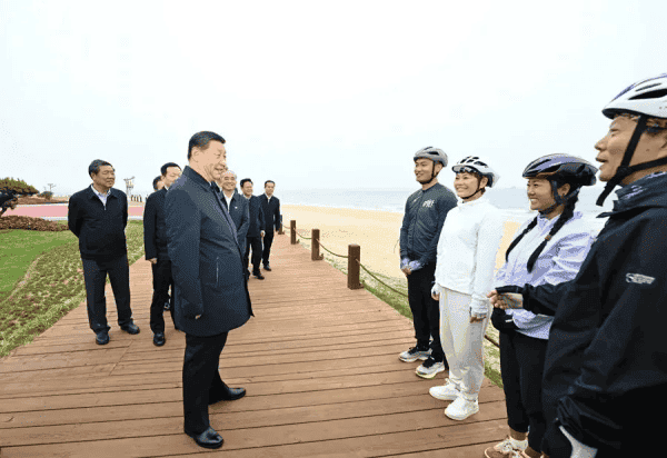 22日下午,习近平总书记在山东省日照市考察调研。他先后来到日照港和阳光海岸绿道,了解当地推进港口智慧化绿色化建设、扩大对外开放和加强海岸线生态保护修复、提高人民生活品质等情况。(文字记者:张晓松、朱基钗;摄影记者:鞠鹏、谢环驰、李涛、殷博古)