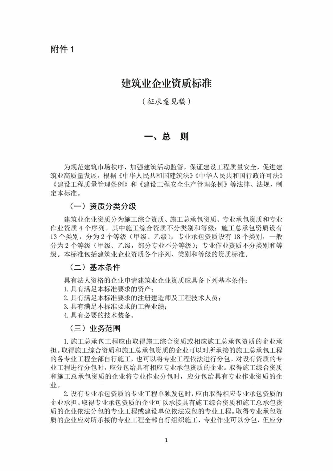 刚刚,住建部发布中华人民共和国住房和城乡建设部关于《建筑业企业资质标准(征求意见稿)》等4项资质标准公开征求意见的通知。部分内容如下: