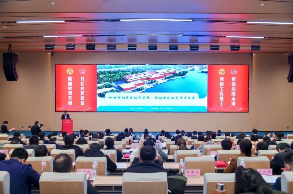 在主题交流研讨环节上,行业智能建造领域专家、劳模创新工作室领衔人和工会主席代表,围绕“智能建造 匠心筑梦”主题分享经验做法,一公司作“加快智能建造技术应用,推动建筑业高质量发展”经验交流。